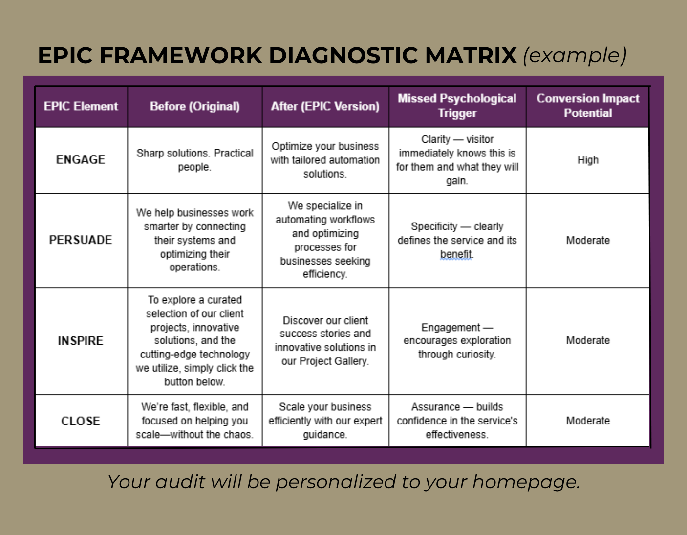✅EPIC Framework Diagnostic Matrix — before and after across all four pillars